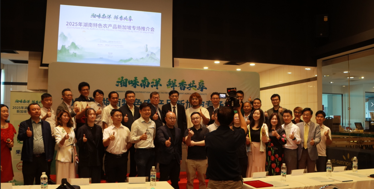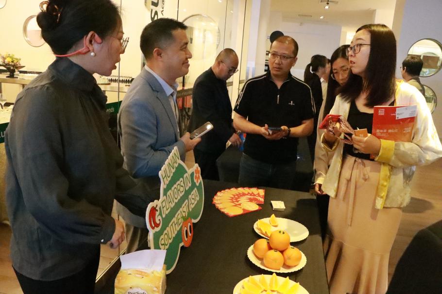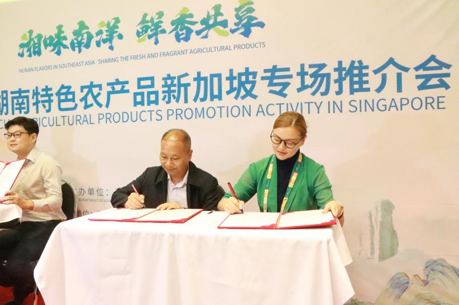 展會期間湖南省農業(yè)農村廳主辦了以“湘味南洋,鮮香共享”為主題的湖南特色農產品新加坡專場推介會,湖南省農業(yè)農村廳一級巡視員劉益平先生,新加坡肉商聯(lián)合會主席郭志強先生等嘉賓出席活動并致辭。會上舉行了隆重的項目簽約儀式,其中湖南崀山果業(yè)公司與新加坡客商達成500萬美元的崀山臍橙出口合約,并與東南亞、中亞、中東等多個國家的客商達成合作意向。