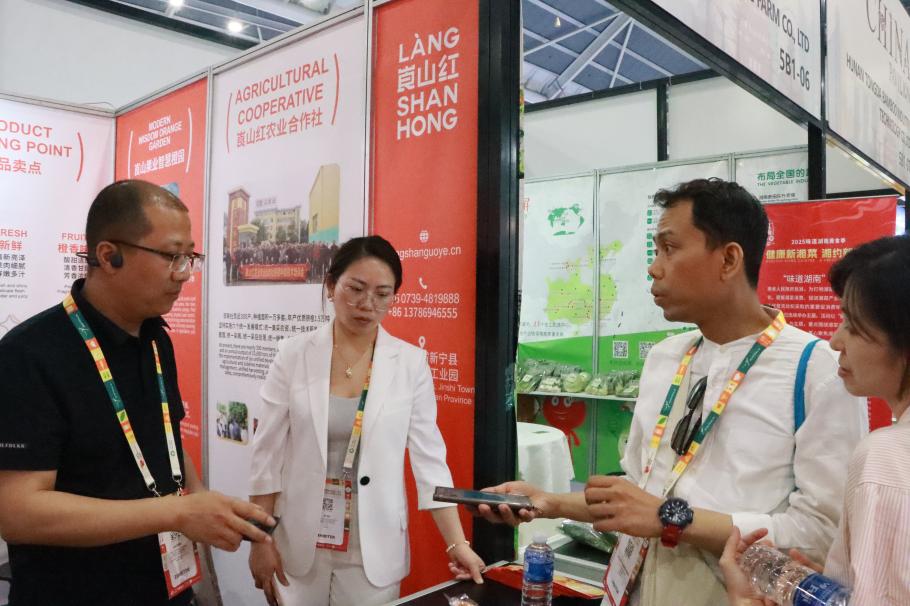 2024年崀山臍橙創(chuàng)下了1.1萬噸的出口佳績,暢銷東南亞、中亞、中東等20多個國家和地區(qū),是大型農批市場、連鎖商超、生鮮電商及鮮榨果汁品牌的信賴之選。展會期間來自新加坡、馬來西亞、印度尼西亞等東南亞及世界各地友商通過現(xiàn)場品鑒,均對崀山臍橙豎起大拇指,眾多客商在現(xiàn)場就迫切提出了進口需求。