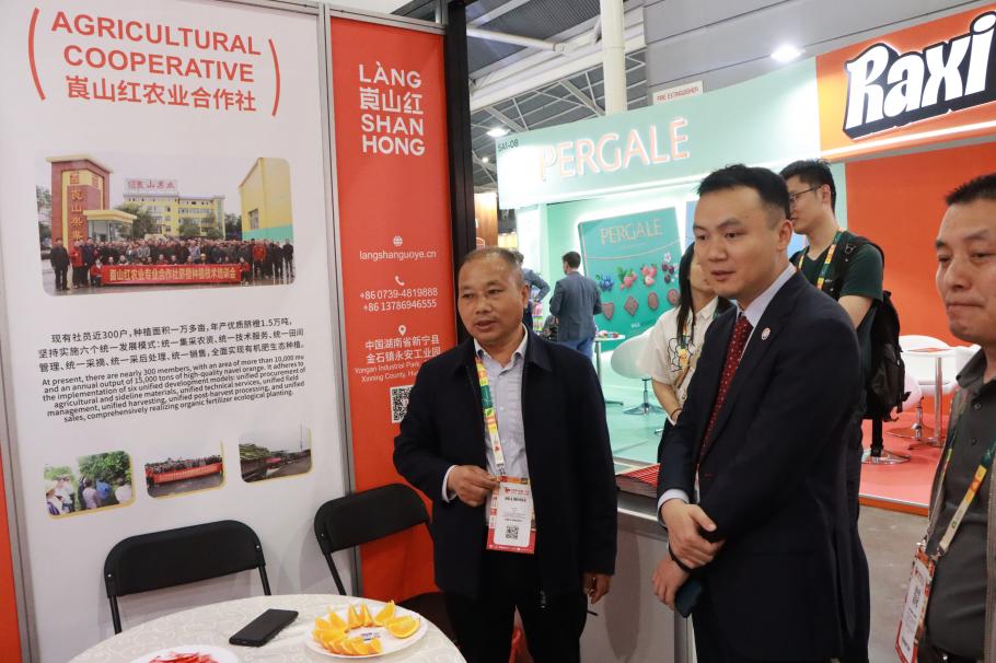 展覽會上,國家農業(yè)農村部、湖南省農業(yè)農村廳、湖南省商務廳領導、新加坡商會代表蒞臨公司展位視察、指導,對崀山臍橙贊不絕口,同時堅定支持崀山臍橙品牌國際化,鼓勵公司抓住機遇,做大做強崀山臍橙國際貿易。