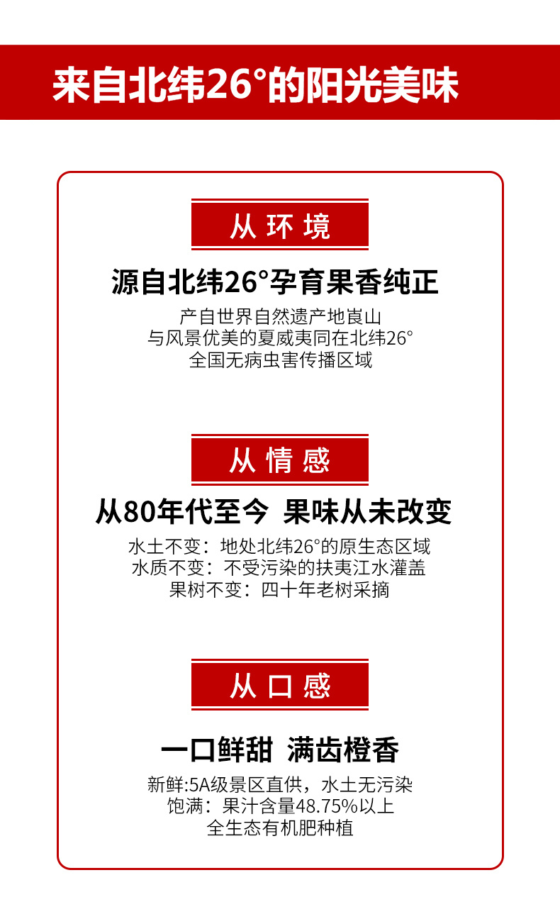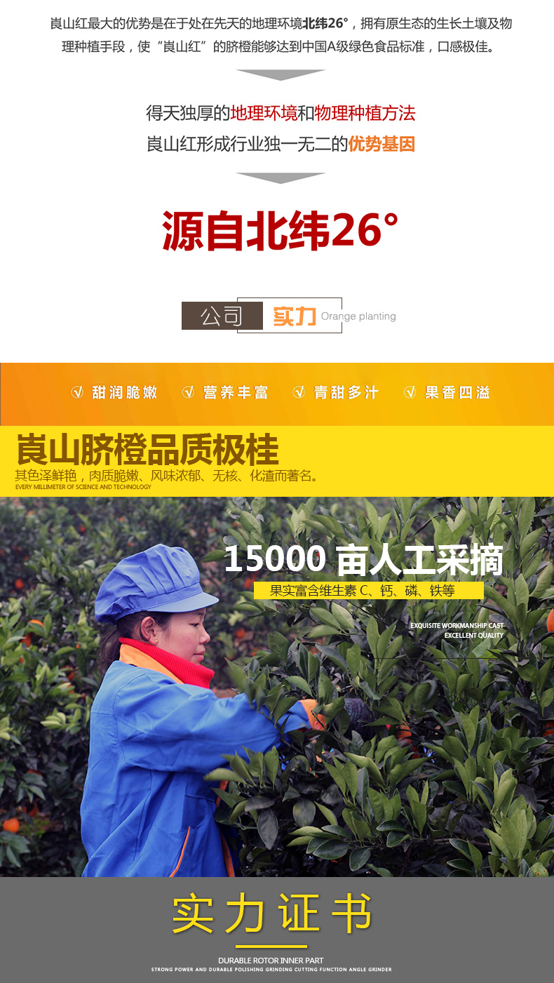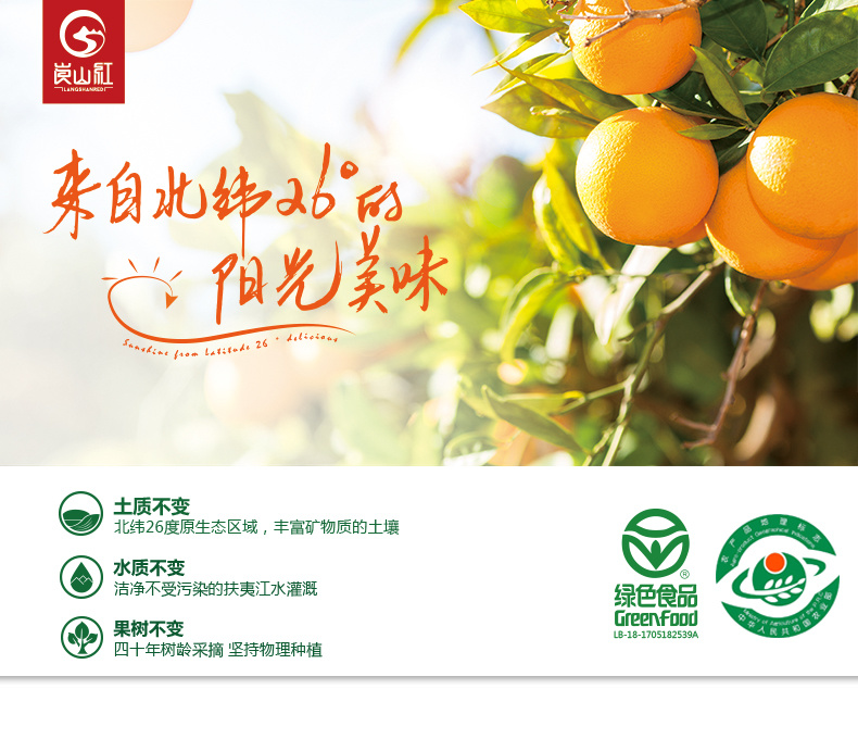 新寧崀山臍橙色澤橙紅,果面細膩,風(fēng)味濃甜,汁胞細嫩,富有香氣,品質(zhì)上等 ,鮮食極佳,耐貯藏運輸,貨架壽命長,營養(yǎng)豐富,具保健作用,達A級綠色食品標(biāo)準(zhǔn),湖南著名農(nóng)產(chǎn)品,中國國家地理標(biāo)志保護產(chǎn)品。
